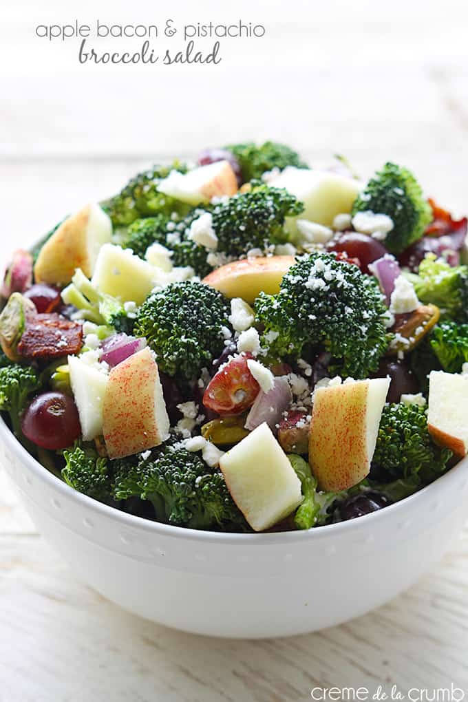 Apple Bacon & Pistachio Broccoli Salad | Creme De La Crumb