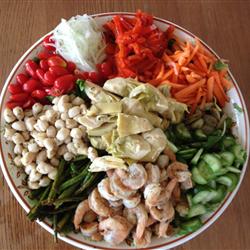 How to make a healthy shrimp salad recipe, with lettuce and roasted veggies, in under.