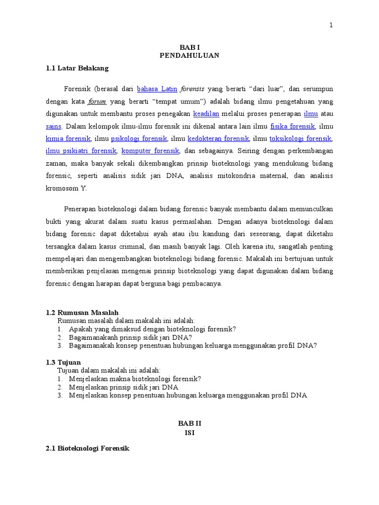 Apa yang dimaksud bioteknologi forensik. Atau dapat dikatakan juga bioteknologi merupakan suatu cabang ilmu yang mempelajari cara memanfaatkan organisme hidup dalam. Forensik berasal dari bahasa Latin forensis yang berarti dari luar dan serumpun dengan kata forum yang berarti tempat umum adalah bidang ilmu pengetahuan yang digunakan untuk membantu proses penegakan keadilan melalui proses penerapan ilmu atau sains. Be Sure Everything You Type Is Easy To Read Effective.