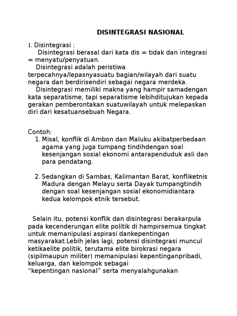 Pengertian Disintegrasi Bangsa Faktor Dampak Dan Contohnya Dosenppkn Com